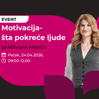 Pridružite nam se 24. aprila od 9 do 12 časova na besplatnom inspirativnom eventu posvećenom jednoj od najvažnijih tema savremenog poslovanja – motivaciji ljudi i razumevanju različitih perspektiva koje oblikuju njihovo angažovanje.