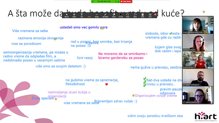 Ovaj vebinar smo organizovali u duhu prilagođavanja situaciji, zbog nemogućnosti meet up-a uživo odlučili smo se za online nastavak našeg serijala „Sa rukovođenjem na Ti“. Kao treću temu shodno dešavanjima oko nas izabrali smo rad od kuće u visoko stresnoj situaciji. Još jednom smo se družili sa našim konsultantkinjama Milicom Paskulov i Bojanom Krstić Marković na kafi, ali preko kamere. Razgovarali smo o temama: organizacije rada od kuće, meri između rutine i fleksibilnosti, šta nam sada zamenjuje ćaskanje u hodniku, ko je odgovoran da organizuje naš rad od kuće i slično. Ovim putem se takođe zahvaljujemo svim učesnicima na iskrenosti i razmeni mišljenja i u ovakvim uslovima rada.